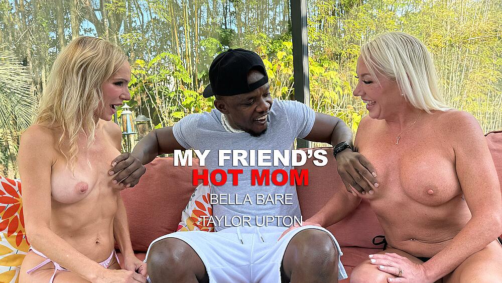 Two hot milfs Bella Bare and Taylor Upton are relaxing by the pool talking about how their son's are getting ready for college, when one of Bella's son's friends stops by looking for her son. They are supposed to hit the gym but Bella's son isn't home. These 2 milfs take advantage of this alone time and let his hard cock slip in and out of their wet pussy's giving him a workout better than any gym would give.